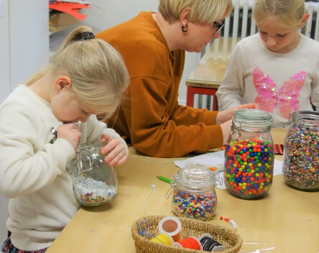 De lærer således ikke kun at tegne og male, men tilegner sig også en særlig måde at tænke og handle på. Derfor har vi hver dag en række musiske, kropslige og kreative aktiviteter, som styrker børnenes fantasi og lyst til at være med.
